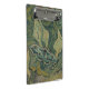 "Giant Peacock Moth" (1889) is a vintage fine art still life painting by Vincent van Gogh, embodying the Post-Impressionist movement. The painting showcases the Emperor Moth, also known as the "death's-head moth," placed in a spring garden surrounded by Calla Lilies and various other plants. Van Gogh famously depicted a skull on the back of the moth, highlighting the themes of life and death. The artist's signature bold and emotional style shines through in the vibrant colours and the intricate textures of the moth's wings. The painting captures the natural beauty of the insect and the flowers, infused with Van Gogh's unique emotional depth.