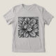T-Shirt in a giant, close-up image of a peony blossom in black and white, accented with dark graphite grey
