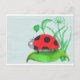 Giant red ladybug on a leaf postcard