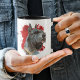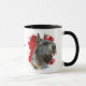 A beautiful water colour portrait of a Giant Schnauzer stands out against a bright red abstract paint splatter background. The image is on two sides of the mug, with your name or other custom text in black between them.