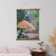 Decorate your living space with this vertical, hanging wall tapestry with wooden tops that features the photographic image of a Giant Sequoia and an autumn coloured Japanese Maple tree in a garden setting.