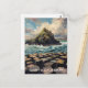 A postcard of the Giant’s Causeway, showing its iconic hexagonal stone columns stretching into the sea beneath a dramatic sky.