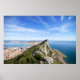 Gibraltar Rock view from above, on the left Gibraltar city and bay, La Linea town in Spain at the far end, Mediterranean Sea on the right.