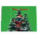 Wrap your gifts in festive fun with this bright and playful gift bag featuring a cute Santa-hat-wearing robot and a merry holiday quote. The charming design adds a modern and whimsical twist to Christmas gifting, making every present look extra special under the tree.