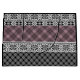 Black and white ,brown , patchwork , lace, lace pattern , patches, stripes , plaid ,blue, plaid