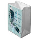 Gift Bag Blue Feathers. Weddings, Showers, special occasions, spas, salons, and more. Also available in purple feathers and white feathers with accompanying inspirational script.