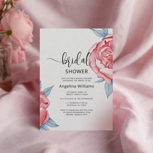Gift Bag for a bridal shower, featuring charming watercolor peonies, soft pink flowers and emerald leaves.