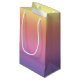 Background of bag is vertical rainbow colours - Green, yellow, orange, red, pink, purple, blue. Colours are situated horizontally.