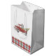 Gift bag with water design by Night Sky Paperie featuring a red truck with a tree and gift boxes in the back