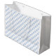 Tree ornament in blue design, is replicated in diagonal rows, to cover the front and back of bag. Background colour is left white.