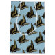 Close-up photograph of yellow and black, swallowtail butterfly. Image is tiled multiple times on the diagonal, with a blue background.