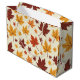 A beautifully designed gift bag featuring a charming fall foliage pattern, ideal for packaging gifts during the autumn season.