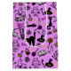 Gift Bags with a modern minimalist design for Halloween, a pattern of silhouettes of a broom, owl, spider web, cat silhouette, witch on a pink background.