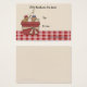 Business card in tan with red gingham and basket of soaps and toiletries. A great hang tag or gift tag. Perfect for soap makers or those who make gift baskets.