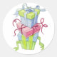 Illustration of three colourful gift boxes, in pretty, festive wrapping paper. Wonderful for a birthday, Christmas or any other special occasion! Also available as a matching Christmas card, Birthday card, stamp, magnet.