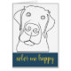 Create your own card! Colour this happy lab with your own creation and send to a friend to brighten his or her day. Blank inside so you can add kind thoughts, words, or more art. Created digitally from an original acrylics painting.