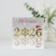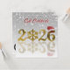 This elegant illustration features the year 2026 in shiny golden typography. The zero is replaced by a detailed gold snowflake, while the final number is decorated with a red Santa hat. The design has a luxurious and festive appearance, making it ideal for Christmas and New Year gift cards.