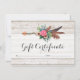 Gift Certificate Bohemian Feather Arrow Rose Card