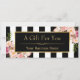 Gift Certificate Gold Floral Black White Stripes Template for you. This design is perfect for Florist, Event Planner, Freelancer, Wedding Coordinator, Photography, Interior Designer, Makeup Artist, Massage Therapist, Hair Stylist, Nail Technician, Beautician, Cosmetologist, SPA Salon Store, and more.