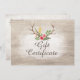 Gift Certificate Rustic Deer Antler Bohemian Rose