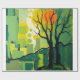 The image is an abstract, textured painting that portrays a vibrant sunset on water. The intense orange sun is the focal point, reflecting on the dark surface of the water with brushstrokes of light. The color palette moves from the warm orange and yellow, which represent the sky at twilight, to colder tones of blue and black that dominate the upper right portion and the lower part of the painting, suggesting the transition from day to night and the presence of the night landscape or of the water. The prominent texture adds depth and dramatic depth to the scene, with accumulation of paint that can evoke the sensation of the clouds, of the surface of the water, or even of the earth or rocks on the margin. The work evokes an atmosphere of intensity and transition, capturing the dramatic beauty of a sunset.