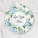 This gift tag is shown in the round shape with a lovely blue hydrangea floral print.