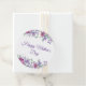 This gift tag is shown in the round shape with a lovely purple floral watercolor print.