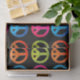 Bright neon peace signs against black background gift tissue paper.