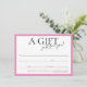 GIFT VOUCHER elegant chic business candy pink Invitation