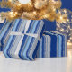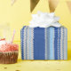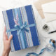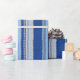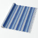 Blue stripes in crochet pattern: white, grey, and shades of blue. Dark blue is predominant. Pattern is covering the width of the roll.