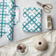 Squares, or diamonds intersect in two shades of the chosen background colour. Default colour is dark sea green. Large diamond is darkest shade with the lighter, smaller diamond, interwoven (crossed over and under) the dark in a woven lattice work look.