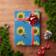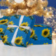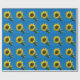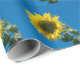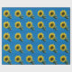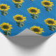 Photograph of a bright yellow sunflower against a deep blue sky is replicated across paper.