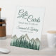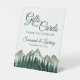 This pretty tabletop sign is perfect for letting your wedding guests know where to leave their gifts and cards. It features a rustic yet elegant watercolor design with an alpine mountain range with forest green pine trees in the foreground. The sign reads: Gifts and Cards, Thank You So Much! There is room for your names and the wedding date below.