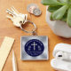 Gifts for Pastor Appreciation Day, Personalised. Personalise Keychain with Cross and Praying Hands for the Pastor's Wife and Pastor, ONE at a time. Type in Your Message, Celebration, Pastor and or Pastor's Wife Name, Date or YOUR TEXT or Delete. You, or CALL Designer Linda: 239-949-9090 EST can TRANSFER this design to your choice of THOUSANDS of other keychain styles, mugs, clocks, pillows, throw blankets, pastor appreciation day party supplies, decorations and more gifts. You or Designer Linda can CHANGE the Navy Blue Background and White Text to ANY COLORS. Linda can change All Colours, the Design, Occasion or Product. Wonderful Thank You Gifts for Pastor Appreciation Day or Pastor Anniversary Gifts.