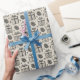 Christmas wrappers in pencil drawn style presents and pine cone design pattern.