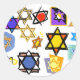 Giftwrapping stickers. Available in 2 sizes and comes in sheets of 20 or for larger sizes sheets of 6. Beautiful Mogen David Jewish Stars on round stickers. Great to giftwrap gifts with, seal or decorate Hanukkah Cards with, or create your own decorating party with. Happy Hanukkah