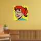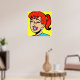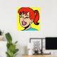 The Giggles Comic Strip Poster design features a yellow background and a cartoon drawing of giddy young woman with her bright red hair in a ponytail. (Well, okay, it's really more of a bright orange.) Her pink lips are parted to reveal pearly white teeth. (Well, okay, it's really more just one tooth.) Her button nose is crinkled and her eyes are squinted in laughter. (They really are. I have nothing to add here, but it seemed like I should add something.) The top of her turquoise shirt is barely visible. Get your giggles on with this fun comic book style drawing.