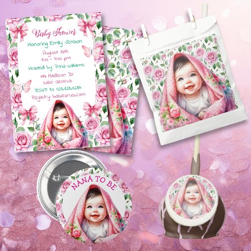 Flowers, Bows and Butterflies Pink Baby Shower Designed by Hilton Lisa