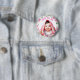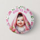 Cute personalised floral girl's baby shower Gigi to be button with a little baby girl under a floral blanket. Pretty botanical pink roses and green leaves, pink bows and butterflies and all with a watercolor look.