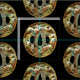 Unique print of a gilded Asian medallion by Vision Studio. A rainbow of autumnal colours stroke the eye, giving the medallion a warm feel against the black background. Get your copy today!