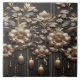 An opulent floral composition featuring layered metallic-gold blossoms, delicate leaves, and cascading tassel accents on a deep charcoal background, blending Art Deco elegance with modern luxury—perfect for premium ceramic tiles accessories and lifestyle