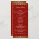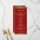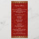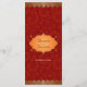 Faux golden edges make a gilded border for this Indian inspired menu rack card. The background is a deep red with a subtle pattern overprinting it. Your customised menu prints on the front with the name of the couple on the reverse within an ornamental frame surrounded by four small golden paisley ornaments. Available with matching products.