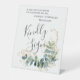 Delicate gilded (faux gold) accents with an Eucalyptus half wreath with a request to sign the wedding guestbook. Bring attention to the guestbook with this pretty sign so your guests can leave their good thoughts and wishes.