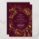 This gilded floral gold foil burgundy casual wedding foil invitation is perfect for an elegant wedding. The modern boho design features a whimsical arrangement of pressed gold foil hand drawn flowers, leaves and botanicals.