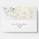 Simple, elegant, modern, boho wedding 5x7 envelope with unique, sophisticated silver and gold floral lace and return address.