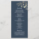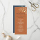 Bohemian, modern, elegant, luxury navy blue and terracotta wedding program, with gold gilded floral lace and trendy calligraphy script.