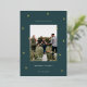 A modern and elegant Christmas holiday card design featuring a single vertical photo on a forest green background dotted with gold foil pine trees. Personalise with your custom holiday greeting, family name and the year beneath.