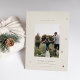 A modern and elegant Christmas holiday card design featuring a single vertical photo on a warm ivory background dotted with rose gold foil pine trees. Personalise with your custom holiday greeting, family name and the year beneath.