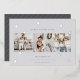 A modern and elegant Christmas holiday card design featuring three square photos aligned side by side on a pale grey background dotted with silver foil pine trees. Personalise with your custom holiday greeting, family name and the year.