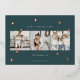 A modern and elegant Christmas holiday card design featuring three square photos aligned side by side on a forest green background dotted with rose gold foil pine trees. Personalise with your custom holiday greeting, family name and the year.